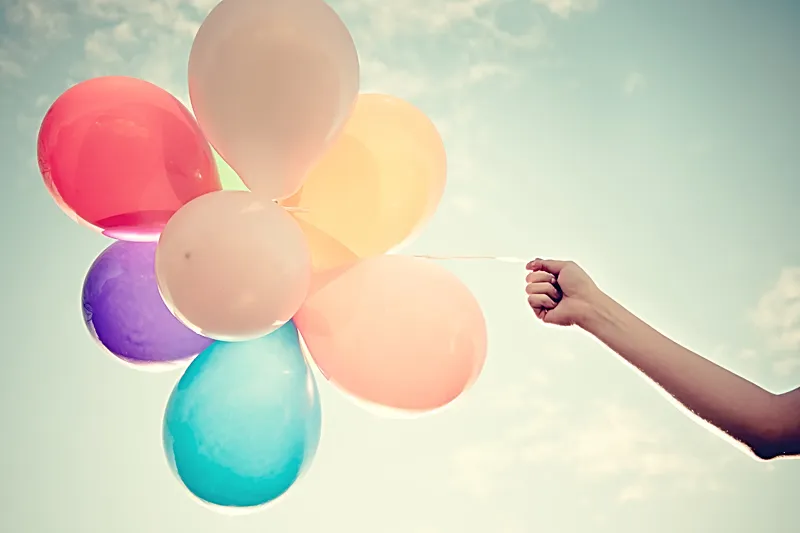 My daughter trying to hold to balloons on a windy Oklahoma day.