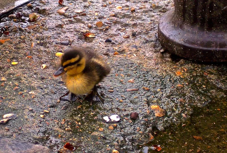 Photo taken along the banks of the Seine. The mother was nearby but paid so little attention to her only duckling. When the mother strayed this is when I took the photo. In the end they swam off together but it was difficult to observe this lonely little thing at that moment.