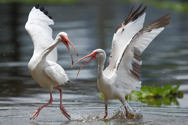 White Ibis get ruffled over differing opinions regarding space turf along the shoreline of Lake Jesup located in Seminole County, Florida.