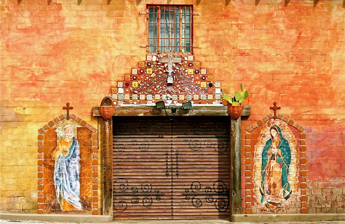 This picture was taken on Oct 21, 2012, in a small town in central Texas. Located in the alley behind several buildings in the town's historic district, are many murals painted by local artists. This particular mural represents a strong influence of Mexican culture present in the state of Texas.