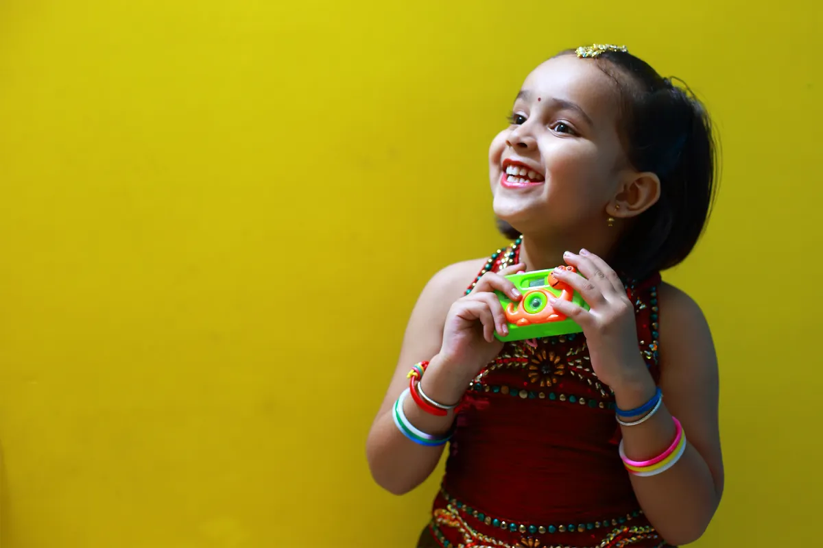 Shreya, my neighbour, loves to pose in front of the camera as much as she likes to get behind it and shoot people. She loves looking through my camera but it gets too heavy for her to hold and shoot. One day, while I was shooting a subject, Shreya insisted me give her my camera for her to play with. I gave her a toy camera instead that was apt for her size. I took this image while she was content playing with her new gear. I reserved this image of the "Little Photographer" to celebrate World Photography Day!