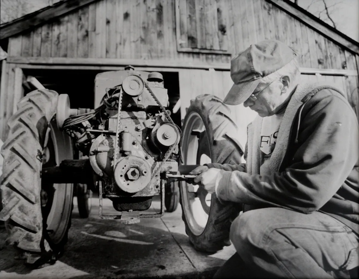 I took this picture of my dad working on a tractor, about a year ago. As soon as I scanned the negative and later printed it in the darkroom, it became one of my favorite pictures I've ever taken.