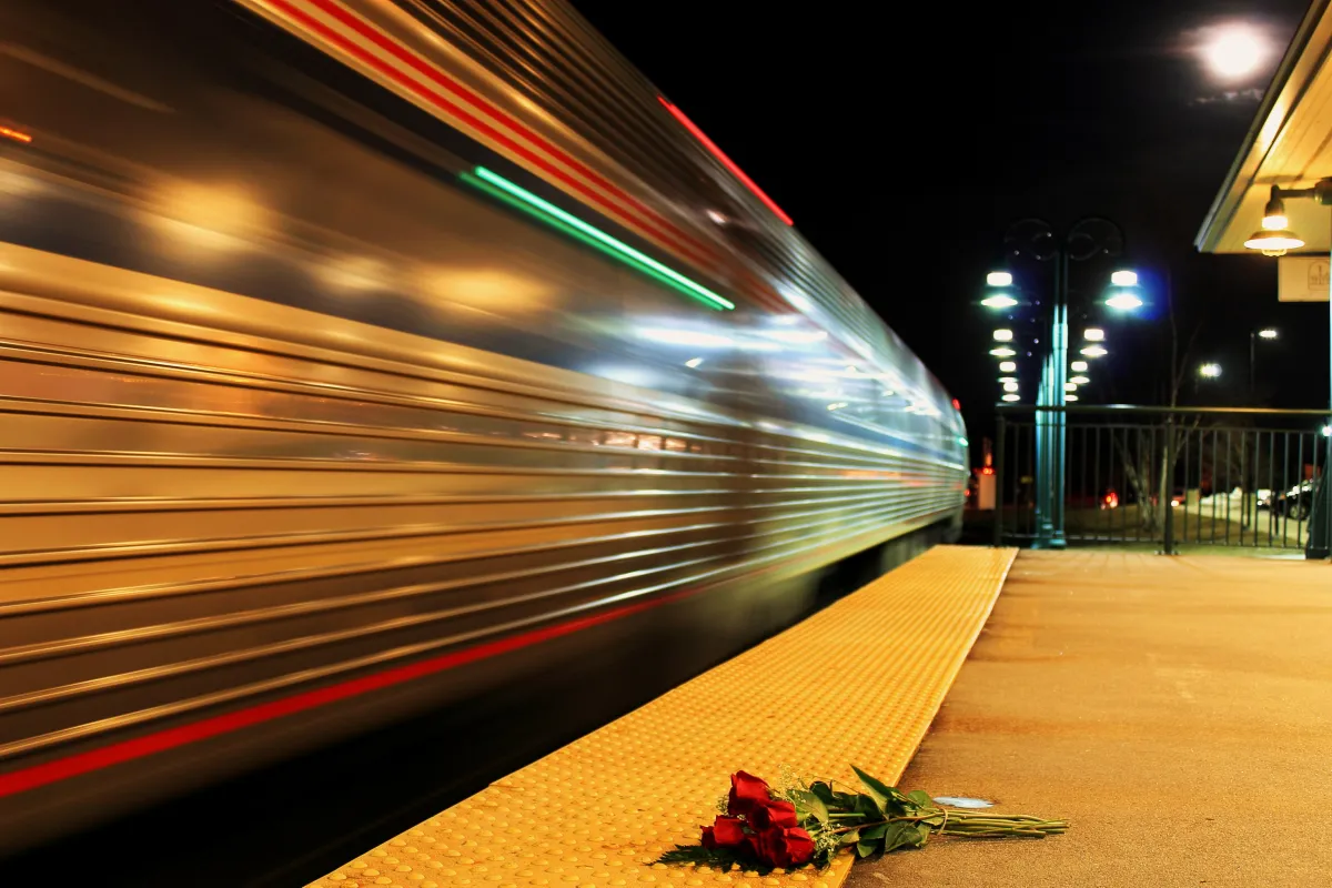 I took this picture while taking a photography class. I took it in Saco, Maine at the train station. I really love the long exposure of the train with the still, forgotten roses.