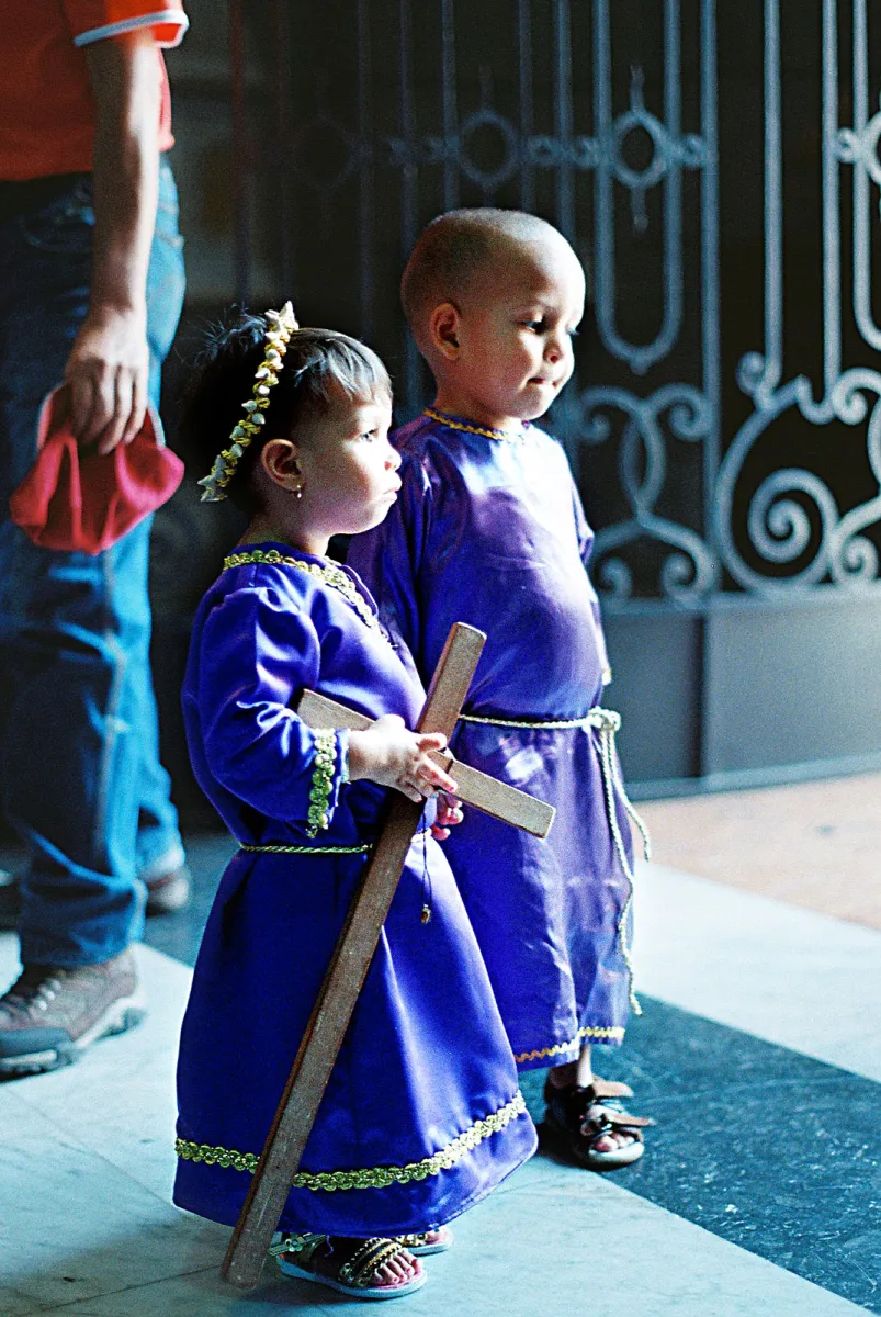Children are dressed to offer their lives to the figure of the Nazarene of San Pablo. A very popular Catholic ritual in the days of Holy Week.