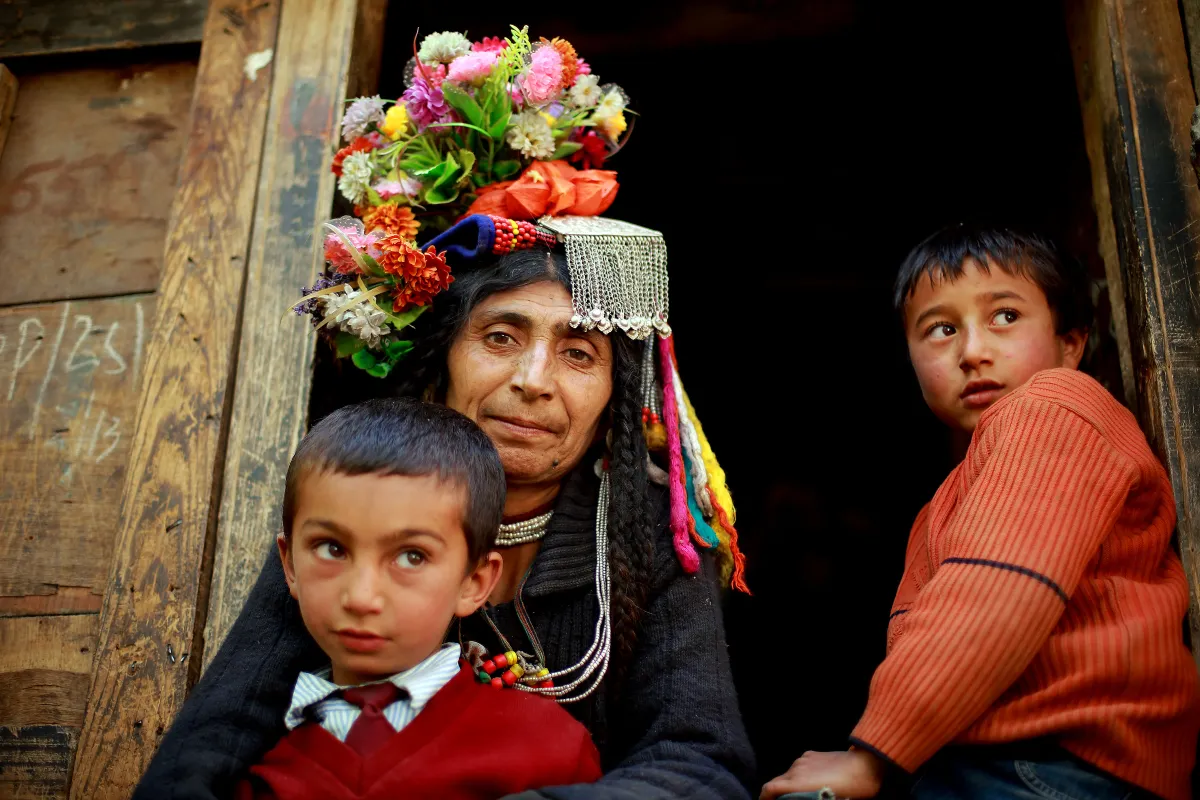 I was eager to see the legendary pure-blooded Aryans said to have made their home in Ladakh. The Brogpas, inhabitants of Dah-Hanu, are said to be the last of the Indo-Aryan indigenous people in these parts. What marks Brokpas out, is that they have lived isolated lives for centuries in such an inaccessibly harsh terrain that they seem to have kept their DNA untainted by outsiders. The elaborate headdress that this lady is wearing is called a Kho and is decorated with bright flowers denoting the married status of women.