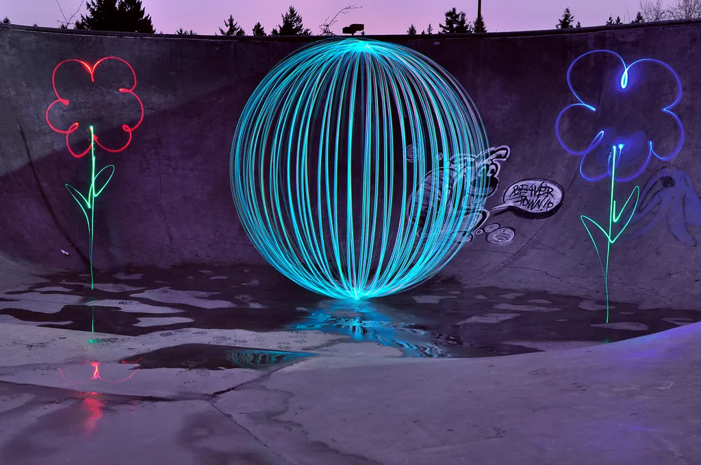 I like this because it combines a few different light painting techniques. It was done in the skate park near my home in Portland, Oregon.