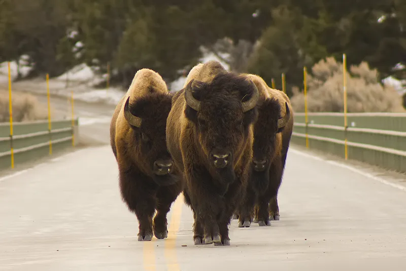 Taken close to the north entrance of yellowstone national park. These three took a leisurely stroll down the bridge and caused a complete traffic jam.