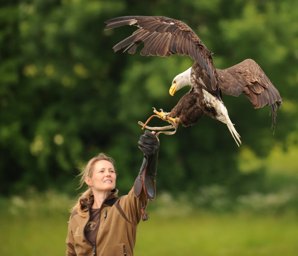 A woman is working with her eagle. I came by with my camera.