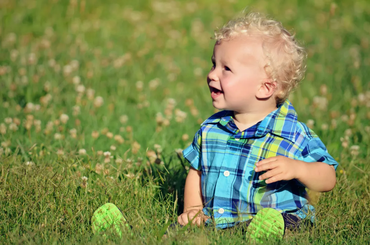 My grandbaby fell in the grass at the park. He looked so precious in the sunlight smiling at us as we were all fussing over him falling.