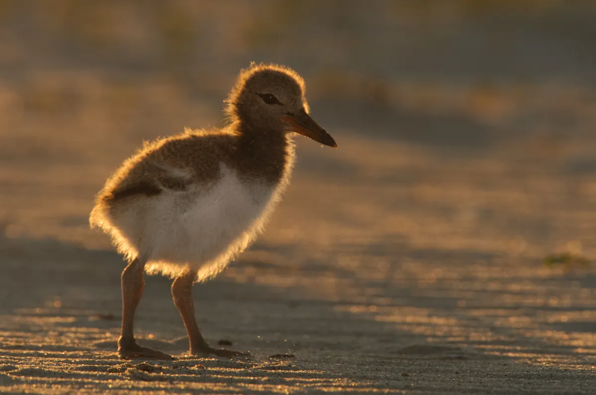 I photographed this oystercatcher chick at sunset on Nickerson Beach, Long Beach Island, New York.