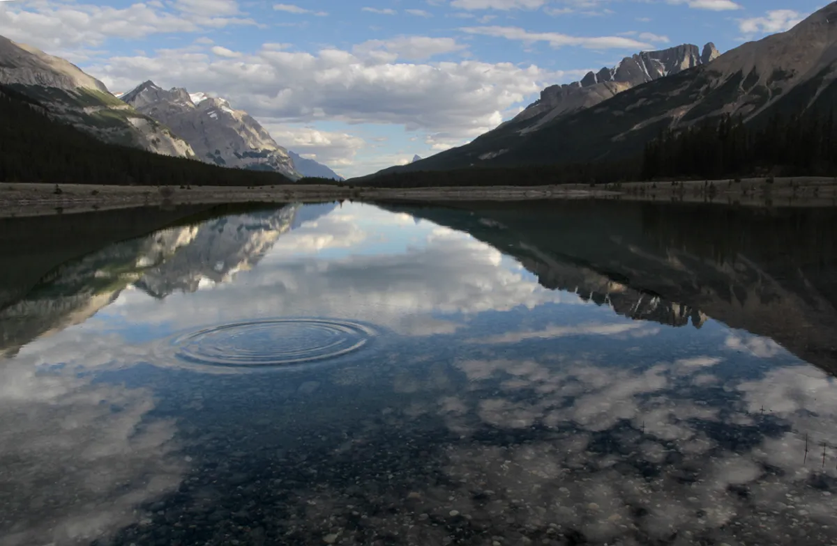 My wife and I were in Canada and I love reflection images but I wanted to be part of this reflection so I through a pebble into the water as if I was painting it in. My wife and I were on holiday when the image was taken and we were relaxed after working so hard during the year.