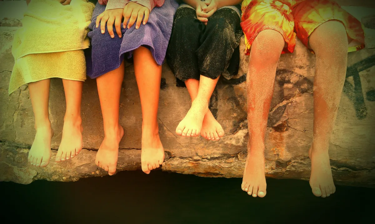 These Students participate in weekly beach cleanups because they care about their environment. This was taken at Hermosa Beach in July 2012. The shot depicts some kids (obviously, the little legs dangling) just hangin' out.. they had fun doing the cleanup and they are good friends at school as well. Great students, great bunch of Junior Ocean Advocates .. Just plain great children!