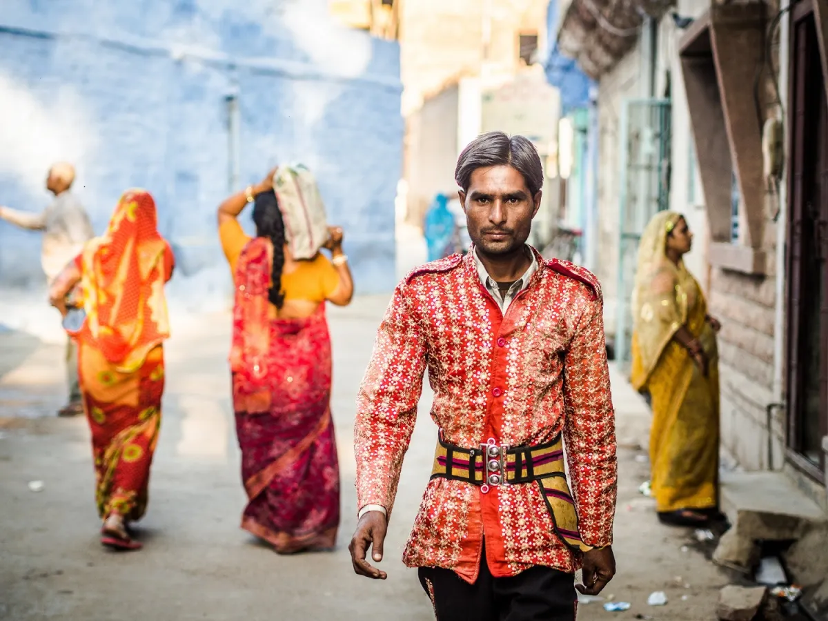 Picture of local Brass Band member walking down the street of Jodhpur, Rajasthan