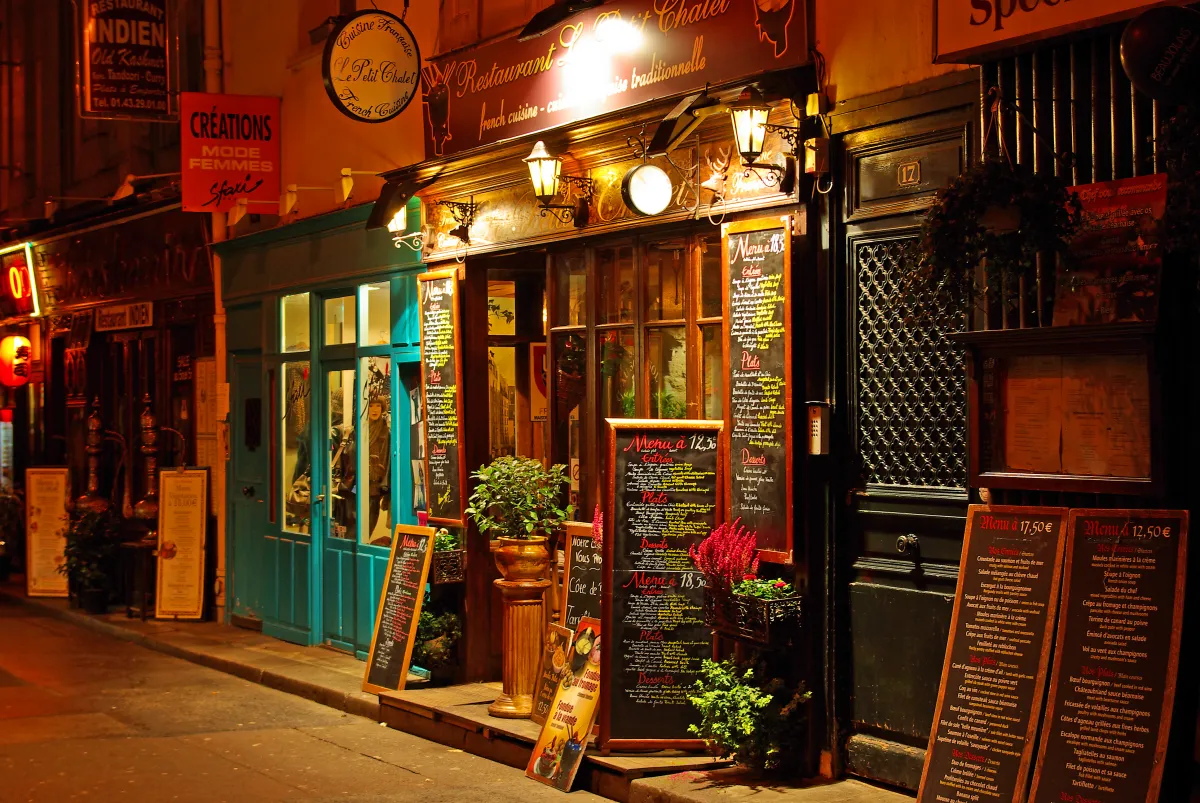 It was early evening hours in November walking in the narrow street of Latin Quarter of Paris. It was quite cold, but the soft yellow light coming from the windows of this lovely restaurant, and from other windows, had warm and inviting feel.