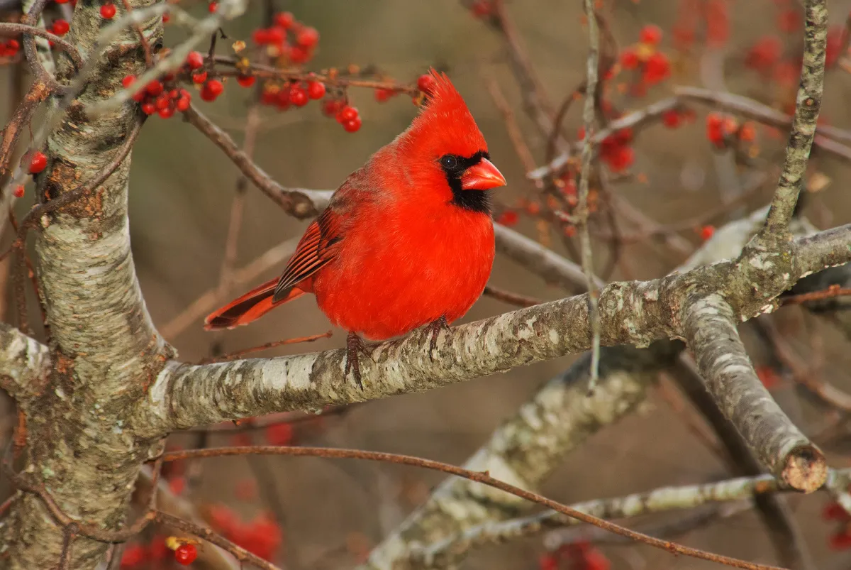 When I saw cardinals in the area of the berry bush at Elizabeth Morton NWR on Long Island, New York, I waited patiently for one to land in the bush.