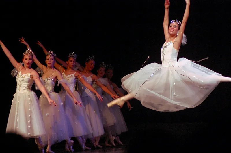 In the performance of the Nutcracker, the Snow Queen is proudly leaping through the air.
