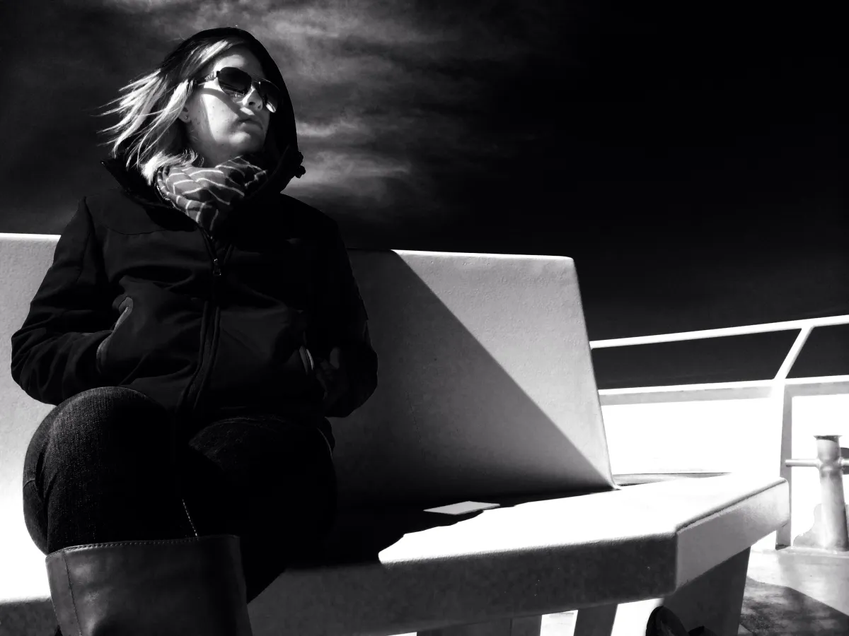 This is my friend Beckers who I took whale watching in Monterey, CA. I was sitting on the ground of the boat and decided to take some pictures and by far this is her favorite. We had a blast in Monterey. 02/16/2014