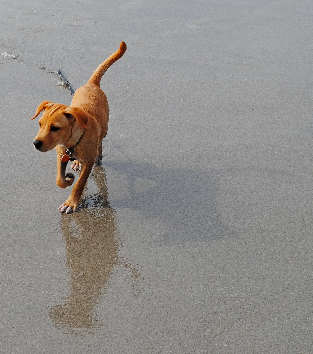 I was taking photos of my pup having fun at Dania beach, Florida. I didn't notice the reflection or shadow until I saw it on the computer.