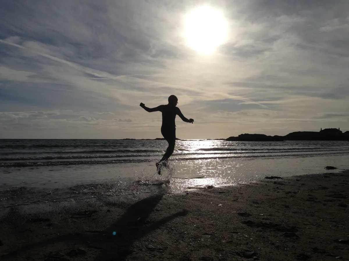 This picture was taken whilst on holiday in Trearddur Bay, Anglesey, Wales of my son Leo skim boarding before sunset. The picture was an impromptu picture taken on my iphone on 31st Aug 13 and shows how beautiful the beaches in North Wales can be.