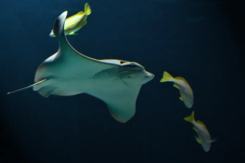 This ray seems to be trying to "round up" some of the fish. Taken at Kansas City aquarium.