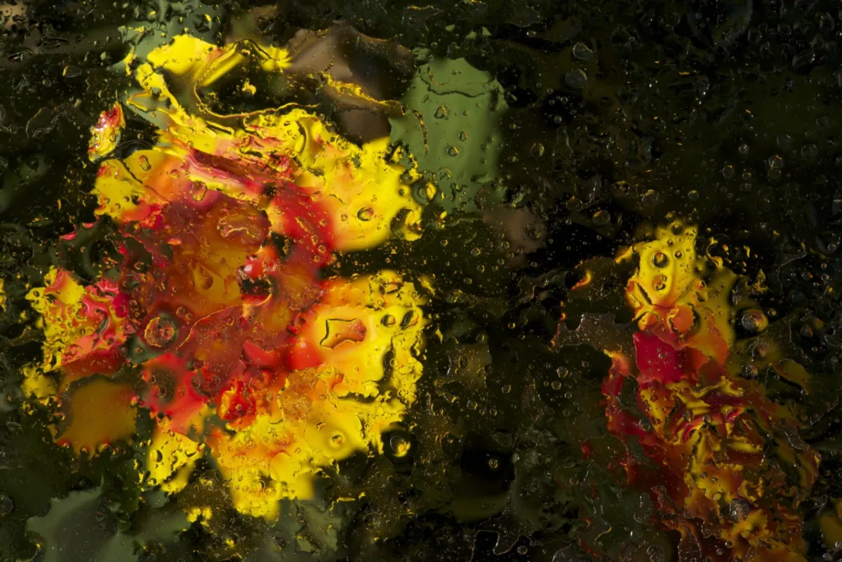 flowers behind a wet sheet of glass created this abstract painting (van Gogh)