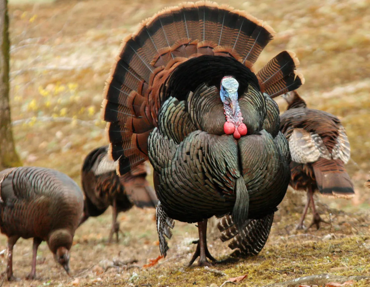 Exciting to see a turkey in strut, even minus one feather.