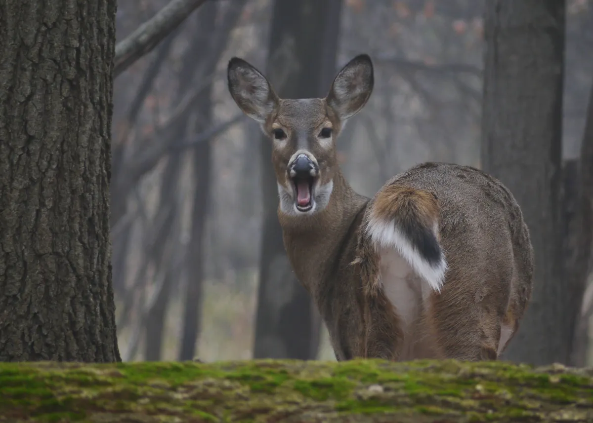 Took at a open nature center in Michigan. Always see deer here. This one appears to be yelling at me.