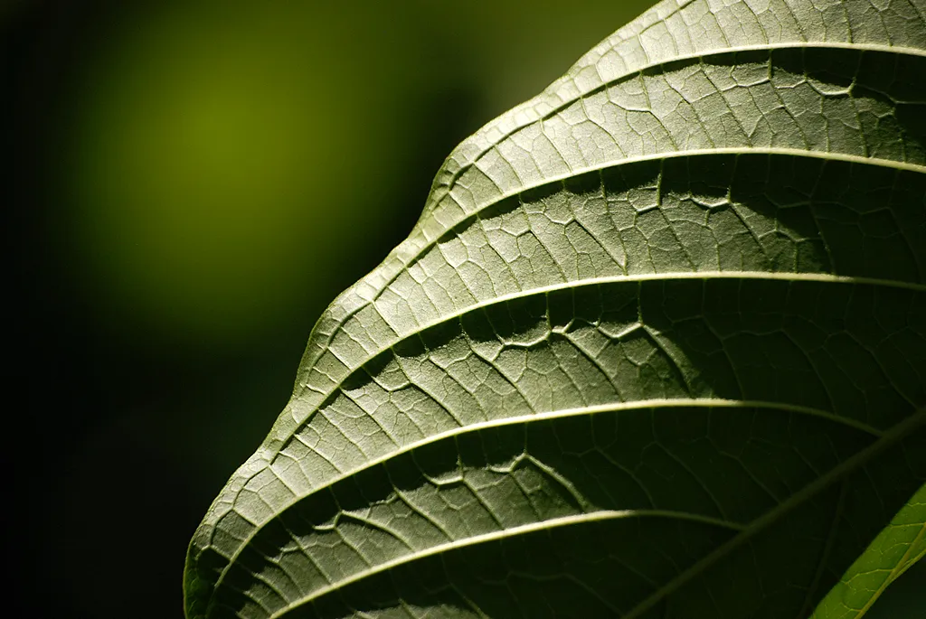 Midday sunlight bathing a leaf and enhancing with shadows its perfection.