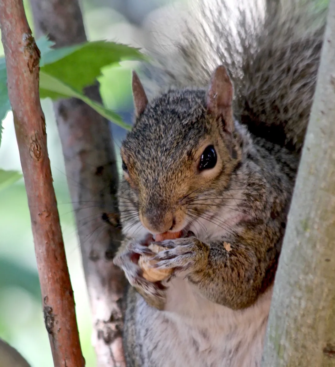 A squirrel named Mary outside our window in her tree eating her daily peanuts. She is quite the character.