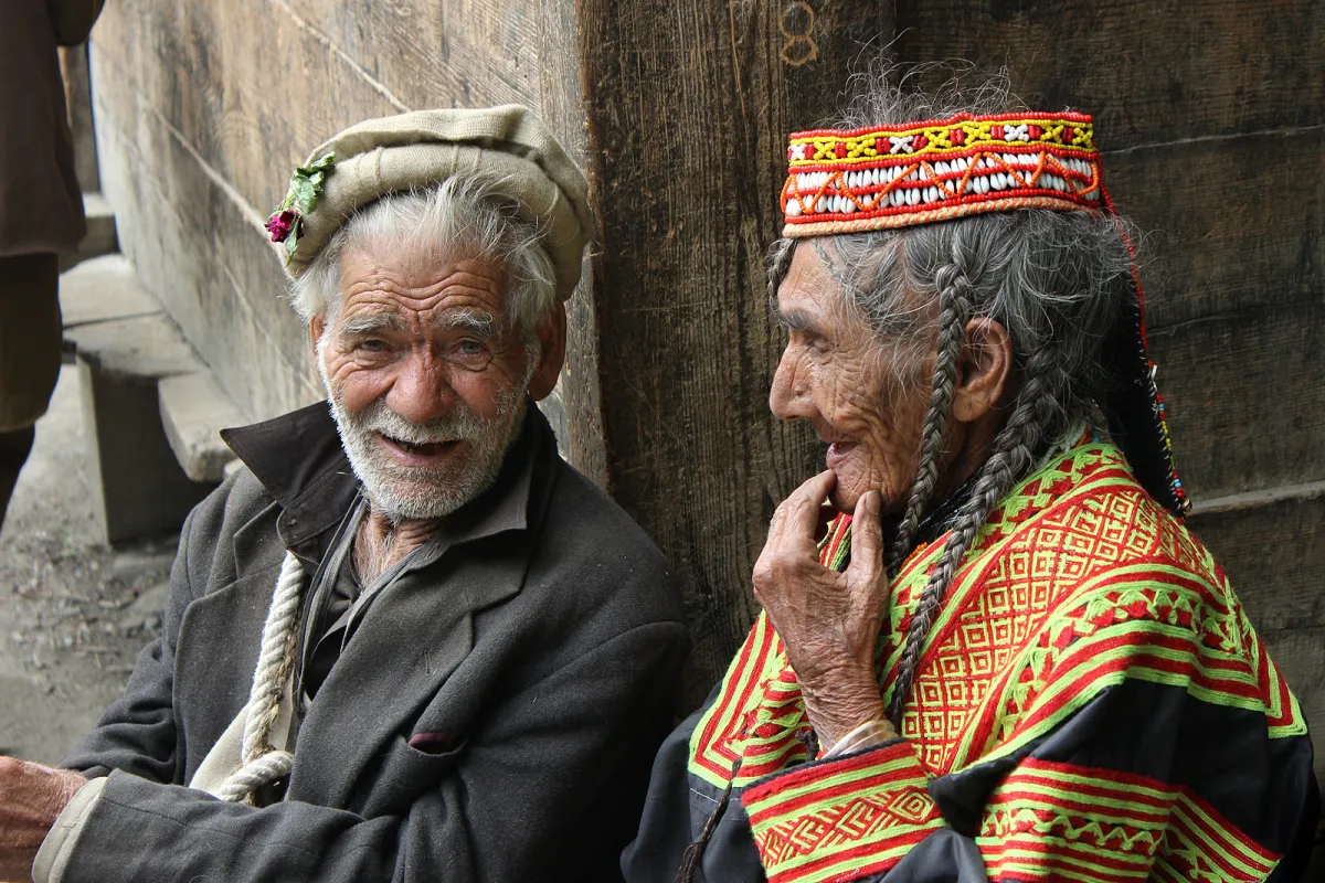 This is a photo of old couple of Kalash Pakistan taken in their annual festival called Chilam Joshi. People in Kalash are very simple.