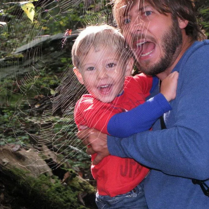 We went on vacation in Gatlinburg, TN. We were hiking in the woods and came across a huge spiderweb. The picture is of my son and husband's reaction to the spiderweb. (slightly overplayed)