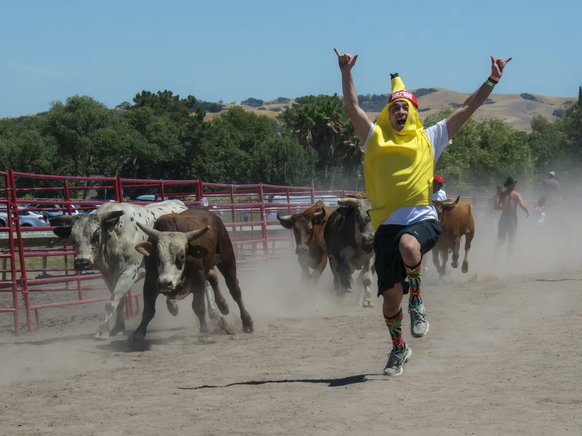 At the Bay Area Great Bull Run there was a guy in costume running ahead of the bulls