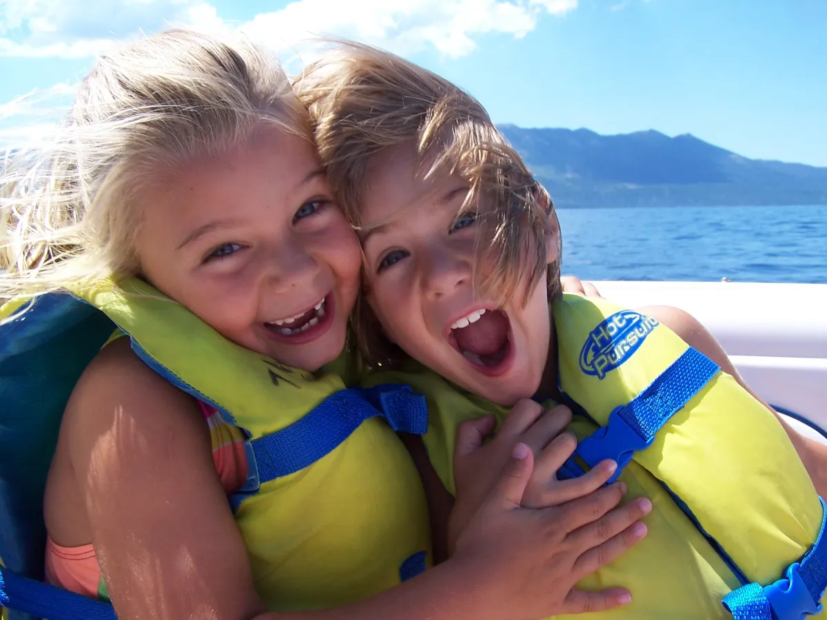 Their first ride in a speedboat! What a wonderful family vacation in Lake Tahoe, California, August 2005.