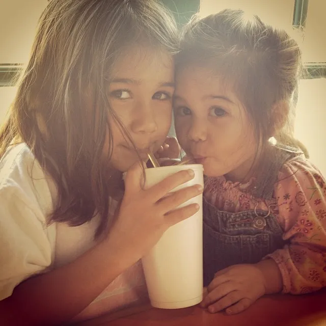 My two girls argue over everything. This was the easiest way for them to settle who gets it next. We were eating at a restaurant in Atlanta, Ga. It was taken on November 6, 2013.