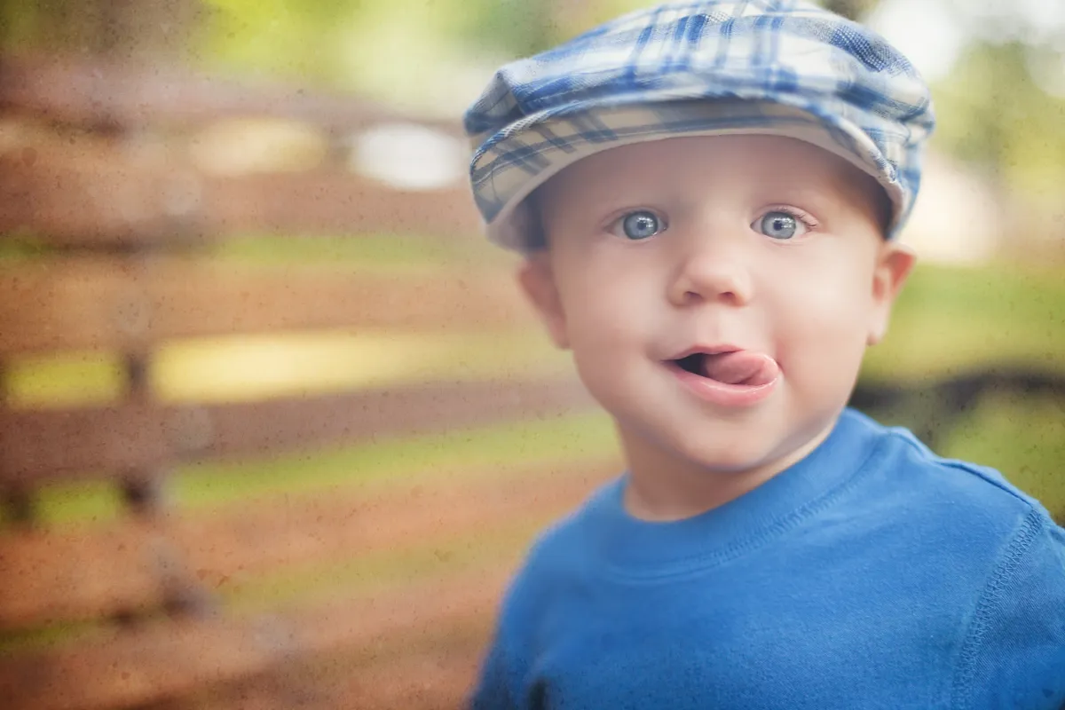 This was taken in August in Arkansas during an extremely humid morning. In between wiping off my lens and trying to keep up with this little tot who just turned one, I was lucky to capture this silly face. Just makes you smile!