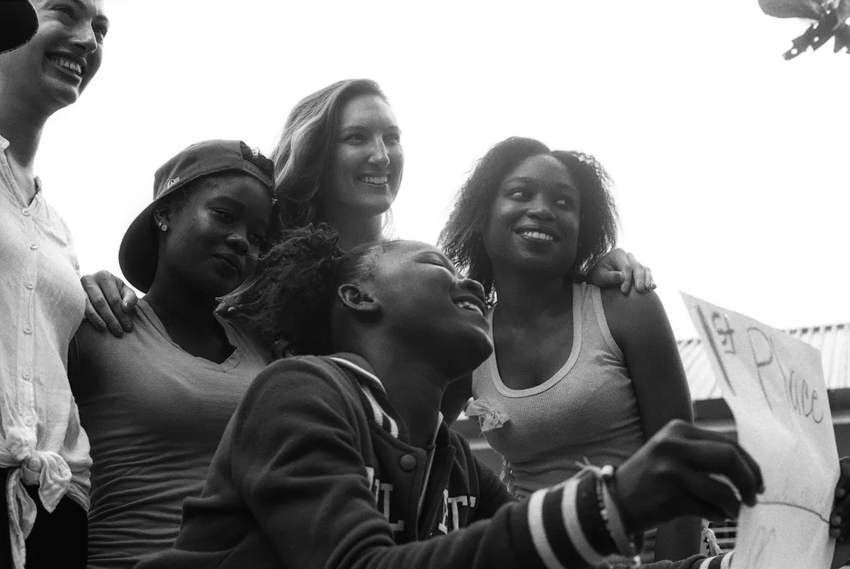 I was in Jamaica at a girl's safety center. Girls here are either from an abusive or neglected background. Many smiles. They had a talent show that day and these girls won first prize. I especially like that they are posing for another photographer.