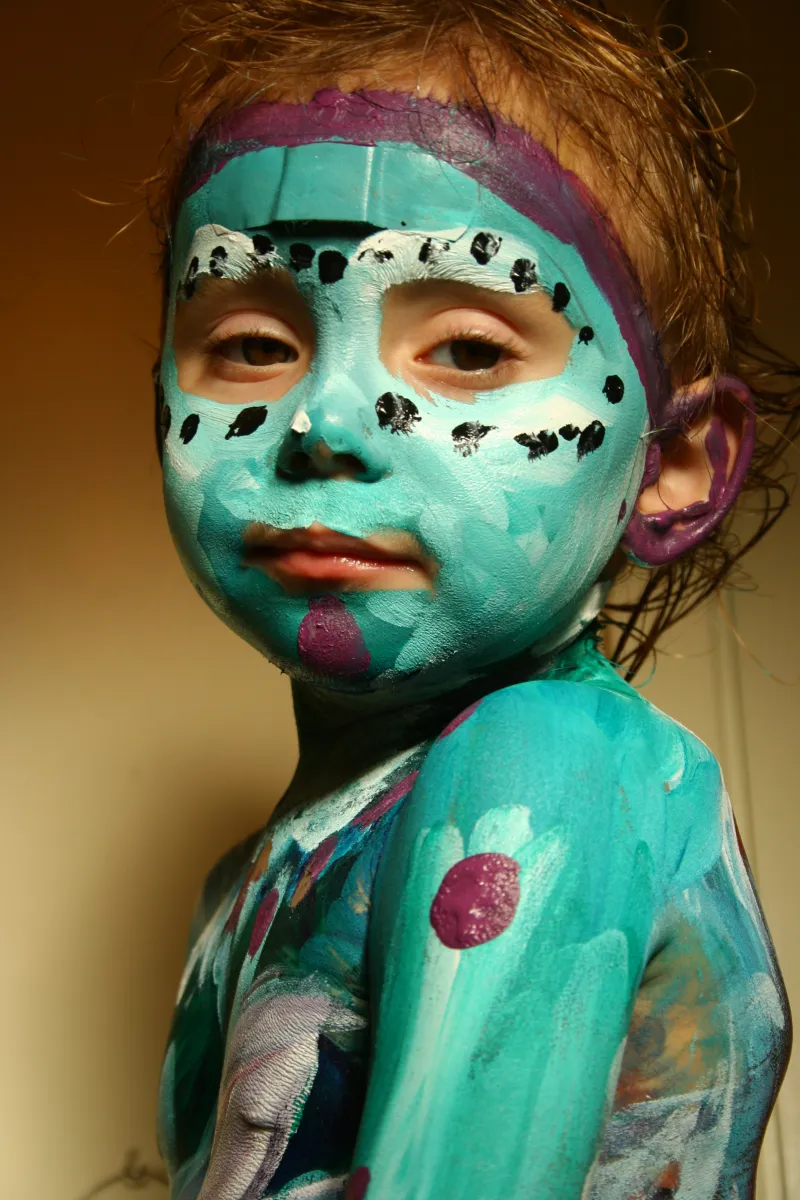 This picture is of my 3 year old daughter Elladiss. It was taken while we were painting pumpkins for Halloween. At first I had done the typical Mom thing and spread out a bunch of newspaper to keep things neat. We were having so much fun that eventually both of us embraced the mess!