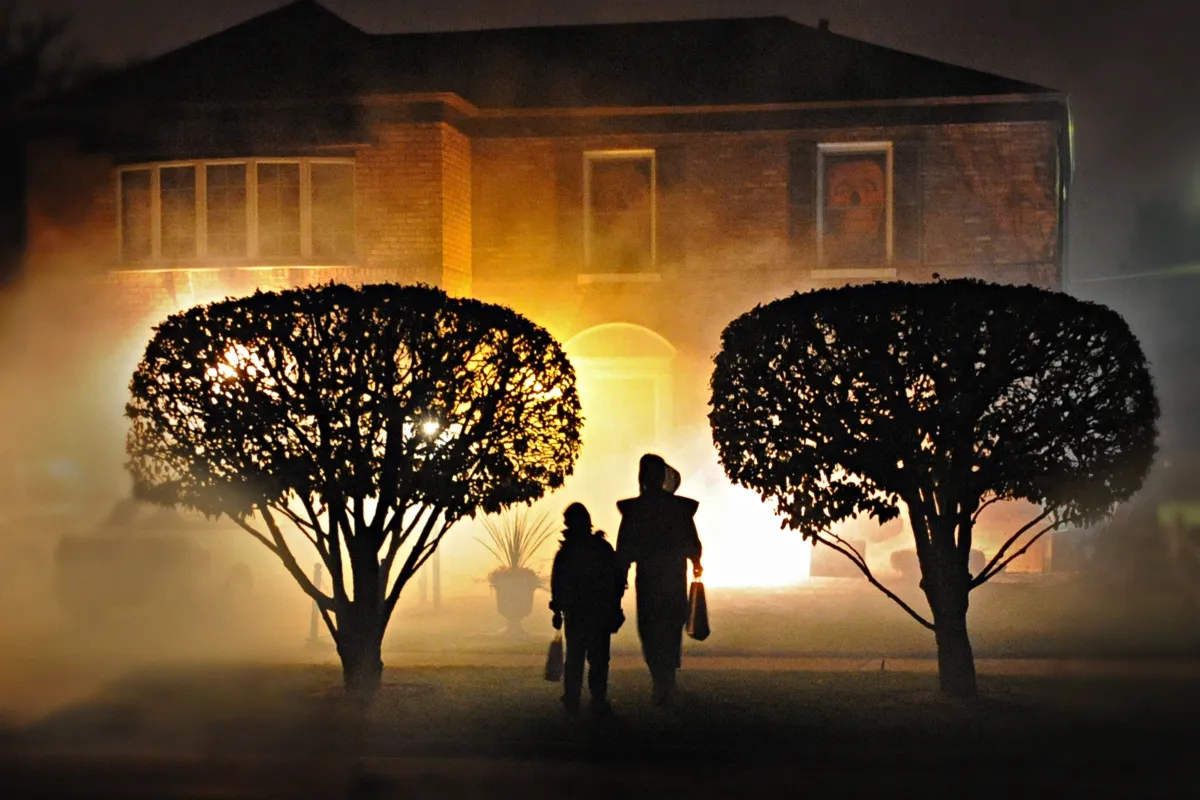 I took this photo last Halloween as my kids were crossing the street to go Trick or Treat at this house. The house was the best in the neighborhood; it looked very spooky with the fake smoke all around it.