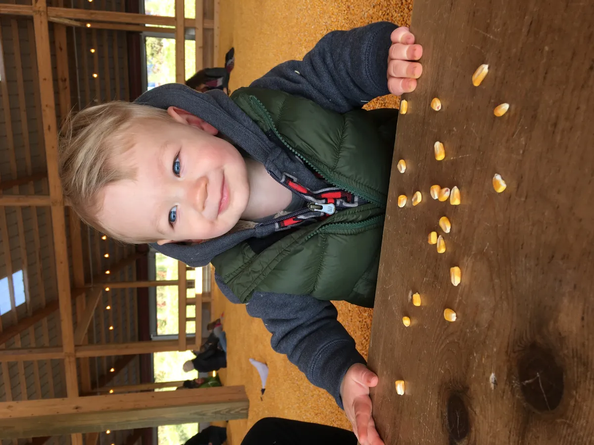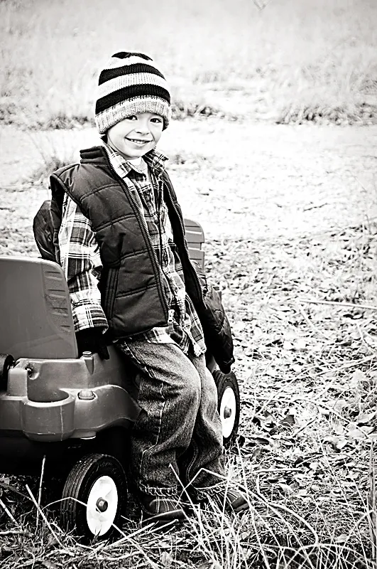 A friend's son relaxing on his wagon. I love his expression and the winter gear he has on.