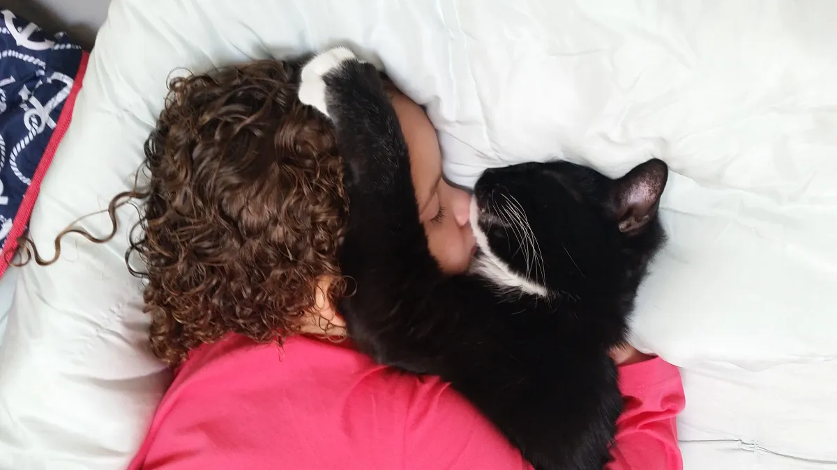 The love between a pet and child is so beneficial to us humans, showing us unconditional love teaching younger children responsibilities. This picture was taken in my bedroom, my daughter was upset that I wouldn't let her wear a skirt. When I came out of the shower she had fallen asleep like this with him , they slept for over a hour together just like this. Under the category Pets, well because he is our pet .