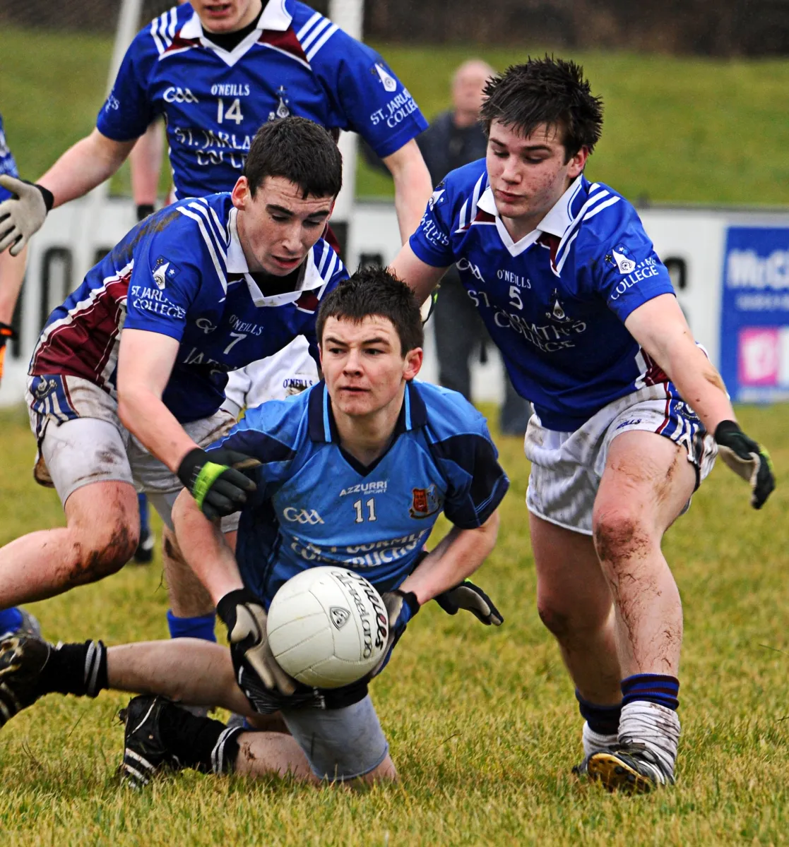 Taken at Colleges Gaelic Football match in Sligo, Ireland during a tense moment during an exciting semi-final game in February. Combining elements of rugby, soccer and "Australian rules' football, this Kodak Moment provides a current look at an ancient game that can be traced to the early 14th century.