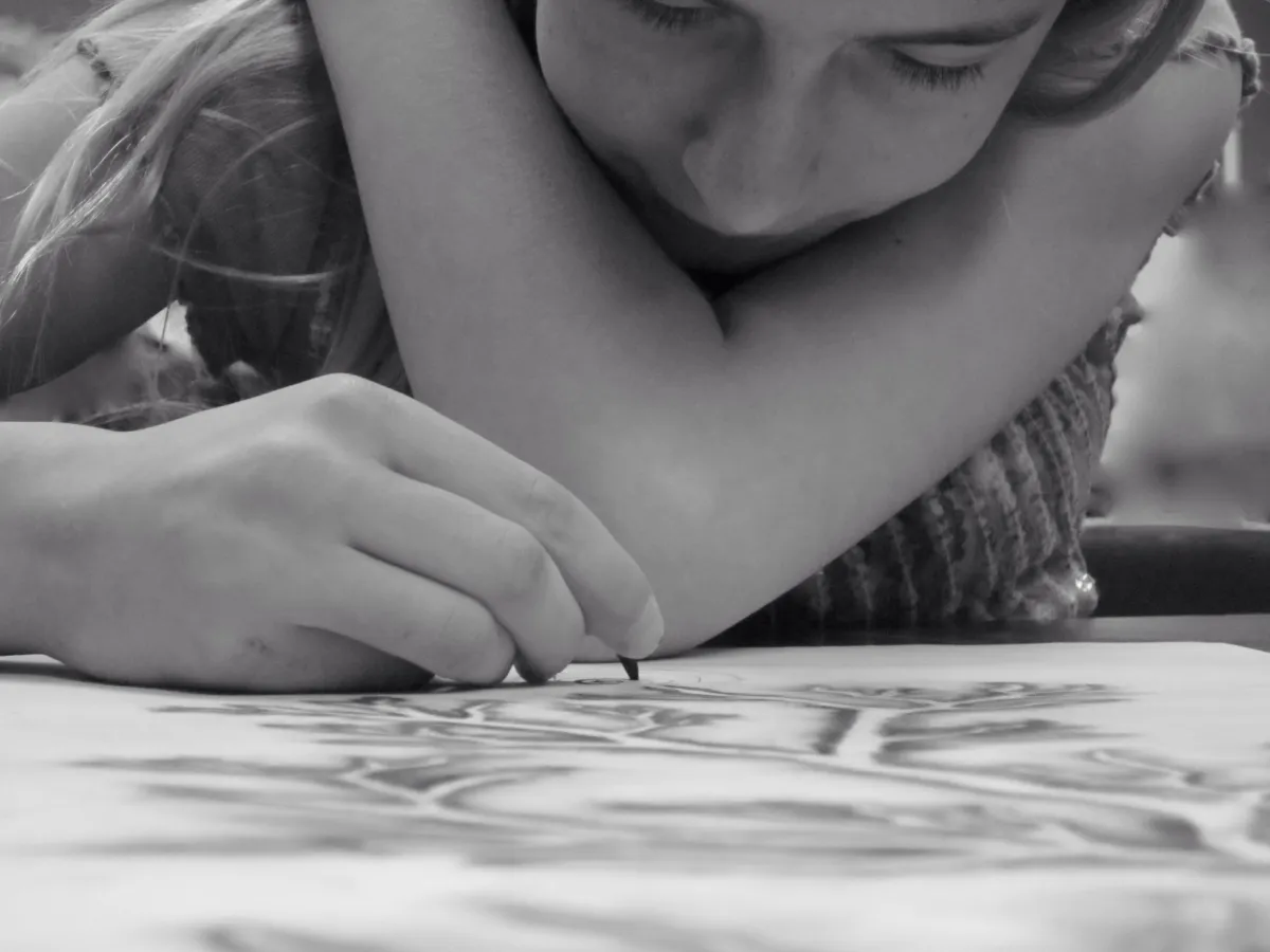 A young girl shows me how to draw lightening in a small school in North Carolina.