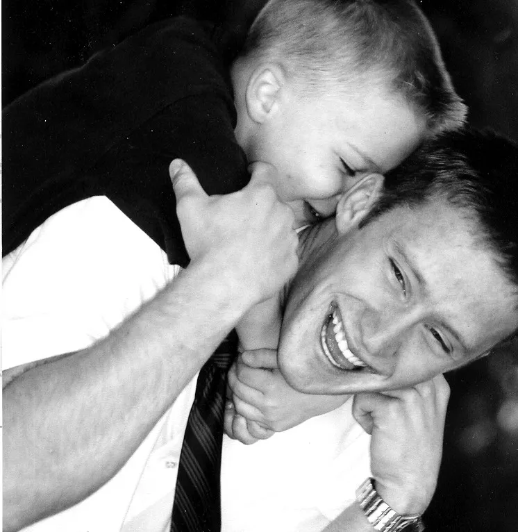 A mother and son share a great smile and laugh by the Potomac river in Maryland.