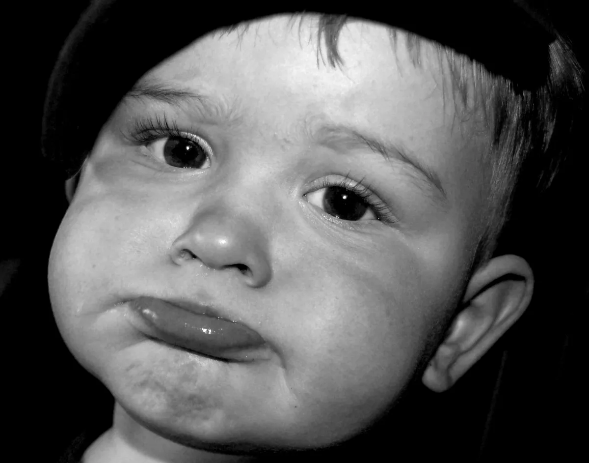 I just love the expression on his face. From "pooie on you" to laughing. This is my grandson, and I got a whole series of great expressions of him on that day. Taken last March in his dining area. He was 1 1/2 yrs old at the time.