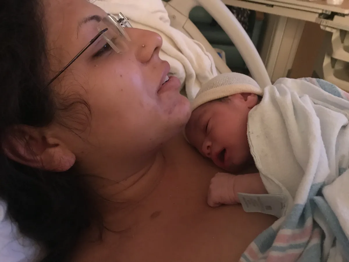 A friend and her new baby son. Can't help but feel the happiness of Mom and baby!