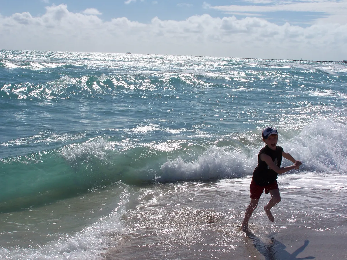 My son played "tag" with the waves while on vacation in South Beach, Miami this past year. He was disappointed he couldn't swim as the waves were too large, but that didn't stop him from having a great time!