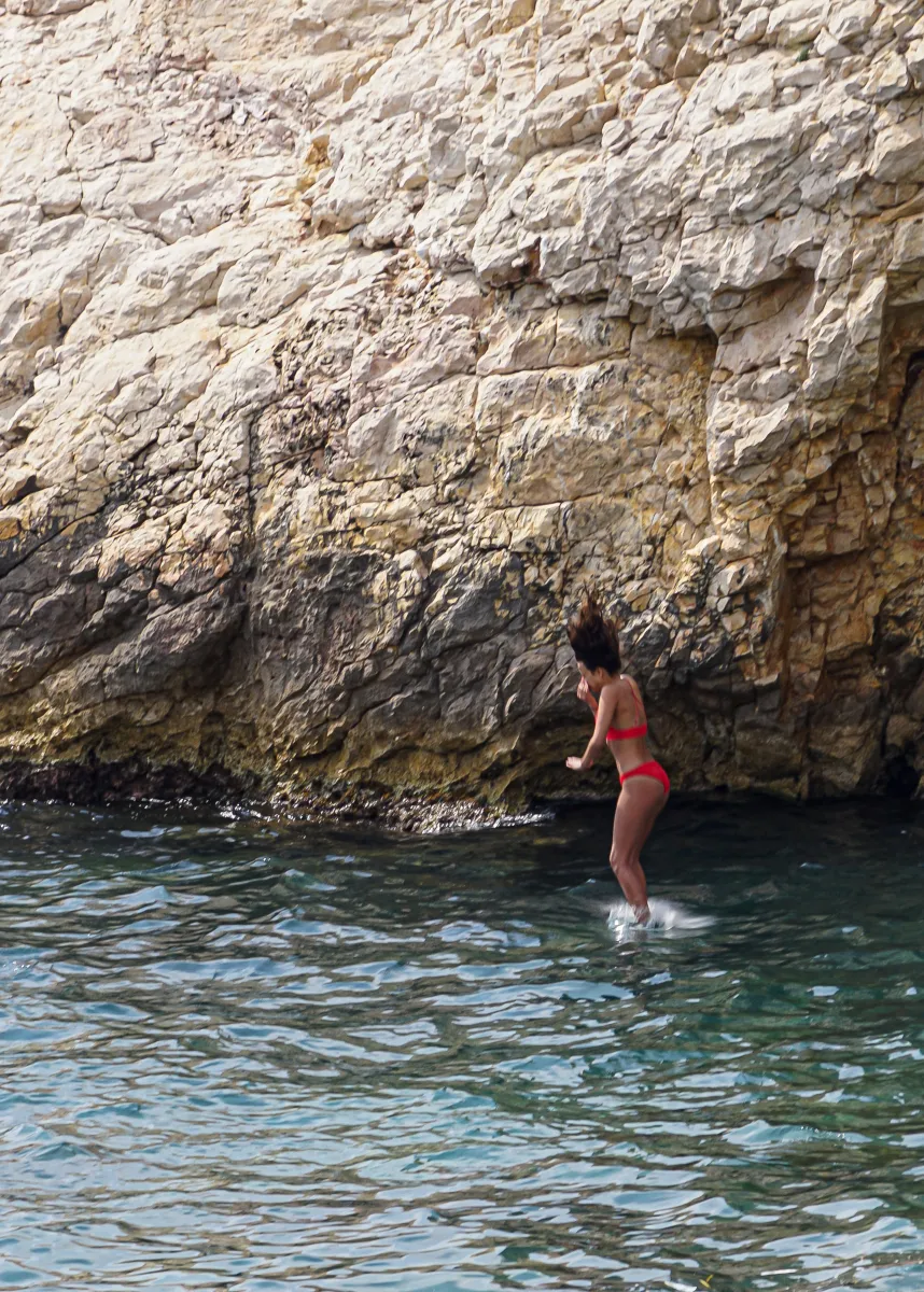 Young girl who jumps from the cliff. I triggered at the right time with a 150mm lens open at 5.6 at 1/320 s and 100 iso. I'm lucky.