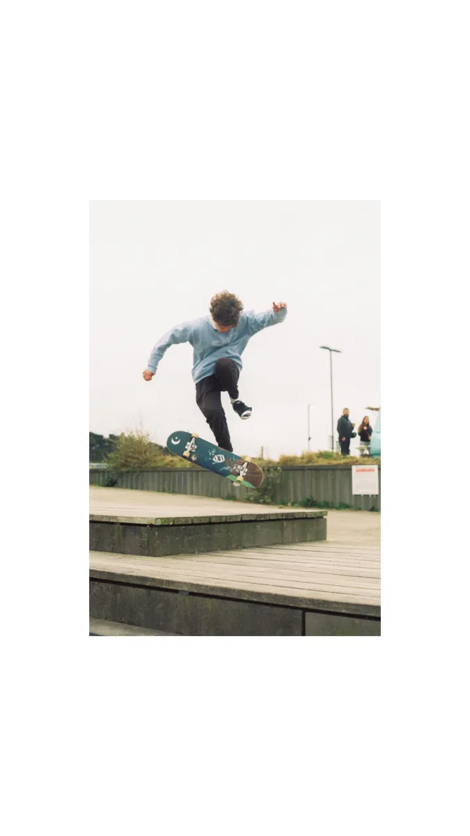 After a whole day of skating between spots, me and my mate Toby rolled up to the final spot. Toby had that this trick (back foot impossible) on his mind all day, he tried for about an hour, but didn’t manage to land it. For one of the final tries I decided to shoot a frame on my Olympus OM-30, and Kodak ultramax 400.