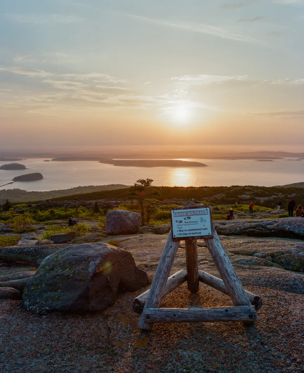 This photo was taken at sunrise on top of Cadillac Mountain in Acadia National Park.