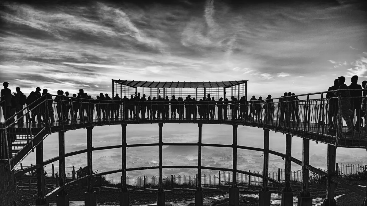 Nandi hills which is about 60 kms away from Bangalore city is one of the most famous weekend gateways. People usually go at the early morning to see the sunrise. This photograph is one of the viewpoints in Nandi Hills where people gather around to see the sunrise.